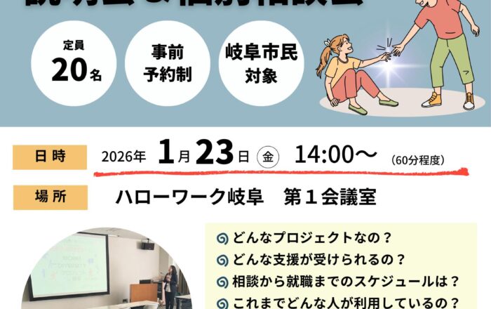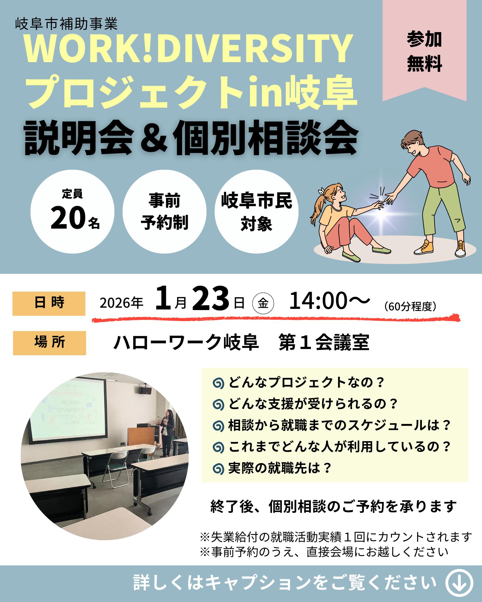 1月23日(金)に、「WORK! DIVERSITY プロジェクト in 岐阜」説明会&個別相談会を開催します!